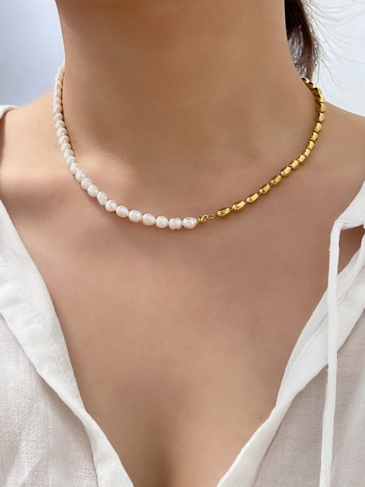 Colette Half Pearl Half Chain Necklace